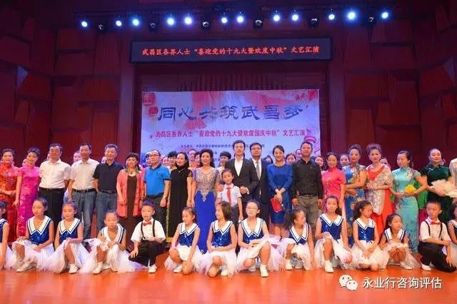 為充分展示武昌區各界人士精神風貌,繼承和發揚中國傳統文化和優良作風,凝神聚力推動和諧社會全面發展,9月27日上午,武昌區委統戰部聯合區文體旅廣局,在武漢音樂學院民樂編鐘廳舉辦了“同心共筑武昌夢”----各界人士喜迎黨的十九大暨歡度國慶中秋文藝匯演。來自區各民主黨派、工商聯、無黨派、宗教界、臺聯、海聯、辛亥后裔、黃埔同學會、僑聯、民促會、知聯會的代表等400余人歡聚一堂、暢敘友情、喜迎佳節。永業行副總裁王琴應邀參加此次盛會,并帶領由公司員工組成的舞蹈團隊,將精心編排的舞蹈《Good Time》呈現于舞臺。