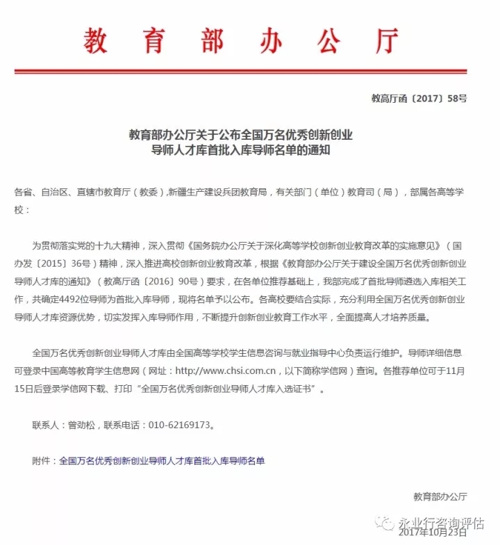 近日,教育部官網(wǎng)公布了全國萬名優(yōu)秀創(chuàng)新創(chuàng)業(yè)導(dǎo)師人才庫首批入庫導(dǎo)師名單,共確定4492位導(dǎo)師為首批入庫導(dǎo)師。其中,由華中農(nóng)業(yè)大學(xué)推薦入選的共有30人,永業(yè)行總裁潘世炳入選在列。