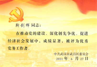 2011年6月,黨委副書記靳劍輝同志被評為武昌區優秀黨務工作者
