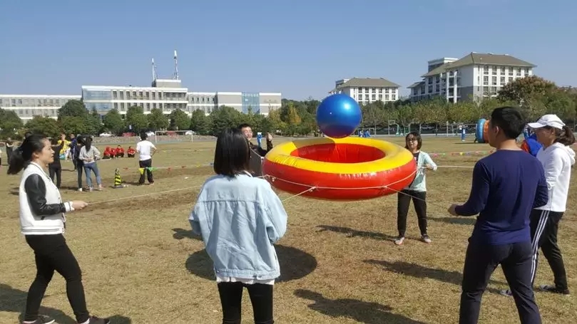 本次運動會分為團體趣味項目和個人競技項目。團體趣味分為陸地龍舟、心心相印、齊心協力、奧運向前沖等六個項目;個人競技項目分別有擼起袖子加油干、袋鼠跳、回味童年滾鐵環三個項目。當大會宣布運動比賽正式開始,整個賽場頓時沸騰起來,加油助威聲此起彼伏,絡繹不絕。
