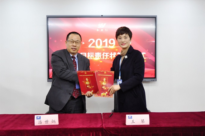 會議舉行了2019年目標責任狀簽訂儀式,董事長兼總裁潘世炳、執行總裁王琴與高管及部門負責人簽訂了《2019年目標責任書》。與會代表還就企業管理創新、提檔升級、績效考評優化、風險控制等主題展開了分組討論。