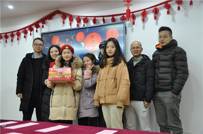 “與我同行”猜一字;“遇事不求人”打一成語;“八駿日行三萬里”打《三國演義》人名……諸如此類的燈謎近百余條。有人“團(tuán)戰(zhàn)”,有人“獨斗”;有人一頭霧水,有人頓生靈感;有人眉頭緊鎖,有人開懷大笑。領(lǐng)獎處更是一番熱鬧忙碌的場景,猜對謎底的小伙伴們紛紛收獲了薯片、飲料、愛心大棗等戰(zhàn)利品,禮輕情意重,小小的禮品表達(dá)了公司對大家的問候與祝福。