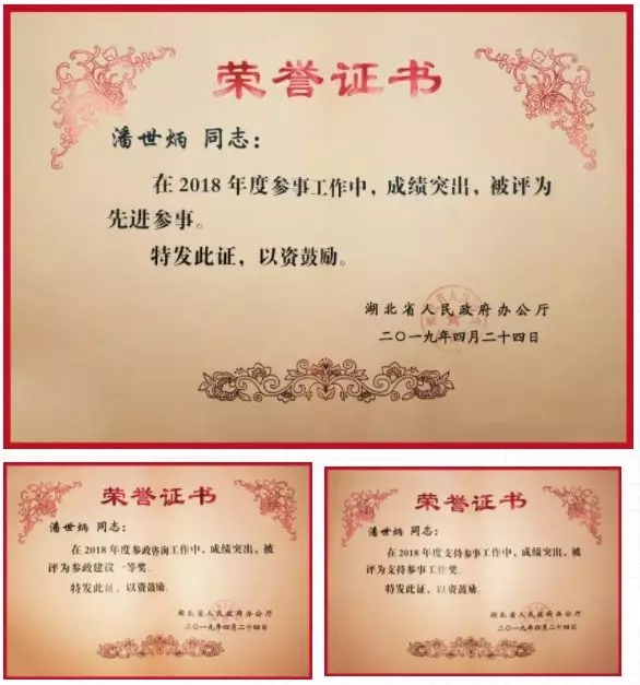 永業行董事長兼總裁潘世炳受聘為省紀委監察委首批特約督查員;當選為中估協第五屆常務理事,為湖北唯一的常務理事;獲得先進參事獎、參政建議一等獎和支持參事工作獎、湖北省優秀企業家(金牛獎)稱號。