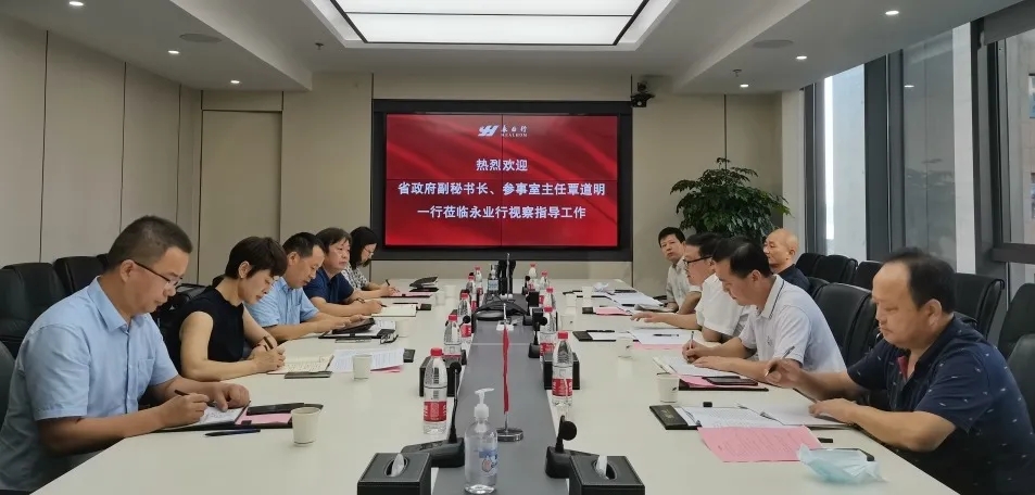 2021年9月26日,湖北省政府副秘書長、參事室主任覃道明一行蒞臨永業行調研指導工作。省政府辦公廳參事室參事業務處副處長、三級調研員熊世民、組織聯絡處副處長陳立軍、參事業務處一級調研員李修松、參事館員聯絡處副處長楊云林陪同調研。