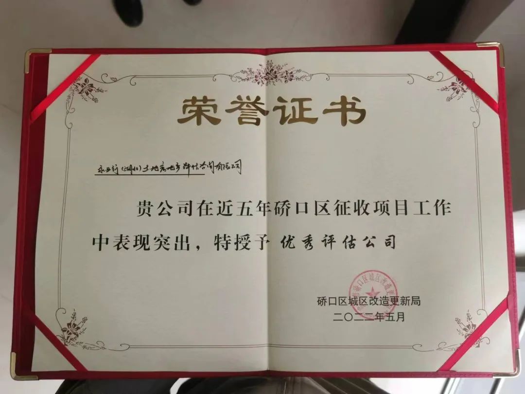 2022年5月14日,武漢市硚口區城區改造更新局舉行“硚口區國有土地上房屋征收第三方機構‘比學趕超’工作交流大會”。硚口區區委常委徐崗、副區長邱華威,硚口區城區改造更新局局長王凱等出席會議,并圍繞硚口區城市更新現狀及未來發展路徑、第三方機構項目推進方式等作工作指導。永業行價值評估事業群執行董事劉勛濤、營銷中心市場副總監蔣柯受邀參與座談交流。會議對表現突出的第三方機構進行了表彰,永業行獲評為“硚口區征收項目優秀評估公司”。