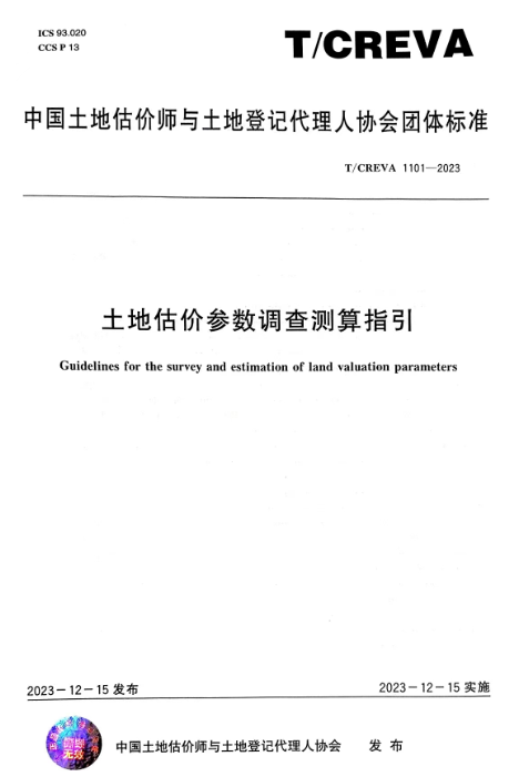 12月14日,中國土地估價師與土地登記代理人協(xié)會(以下簡稱“中估協(xié)”)發(fā)布三項團體標準,永業(yè)行參編的《土地估價參數(shù)調(diào)查測算指引》(T/CREVA 1101—2023)于2023年12月15日發(fā)布實施。