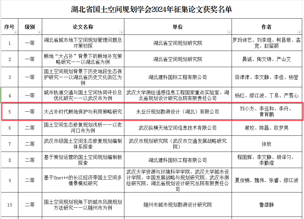 2024年11月20日,2024年國土空間規劃論文征集活動獲獎名單公布,永業行共有2篇論文獲獎,其中一等獎1篇,三等獎1篇。
